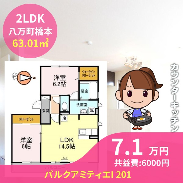 間取りは2LDKで63.01㎡の広さです