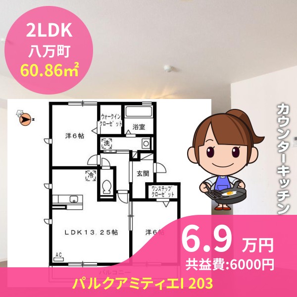間取りは2LDKで60.86㎡の広さです
