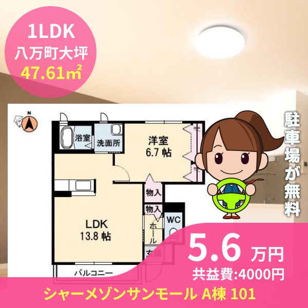 徳島市八万町大坪のシャーメゾンサンモール A棟 101をご紹介します