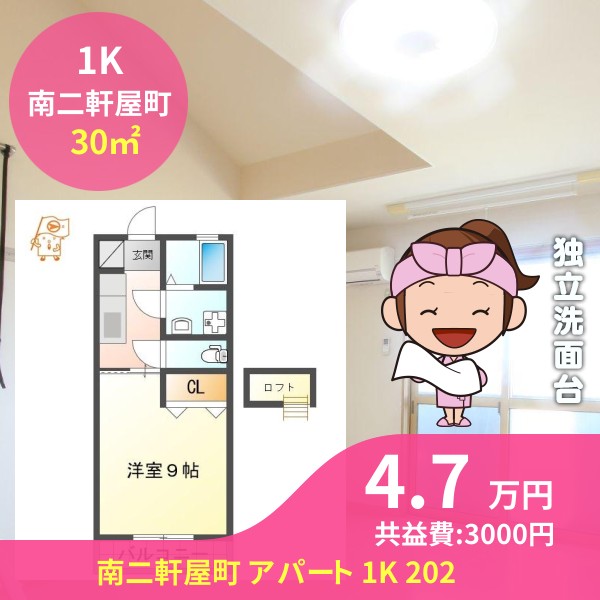 徳島市南二軒屋町の南二軒屋町 アパート 1K 202をご紹介します
