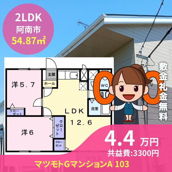阿南市那賀川町上福井のマツモトGマンションA 103をご紹介します
