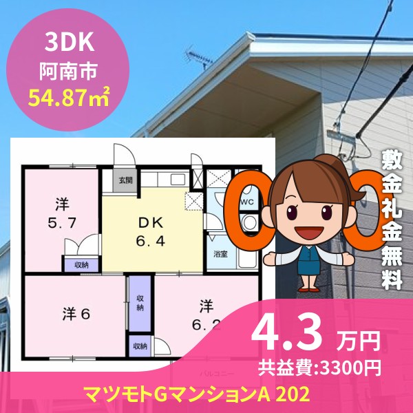 阿南市那賀川町上福井のマツモトGマンションA 202をご紹介します