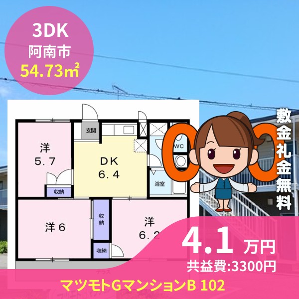 阿南市那賀川町上福井のマツモトGマンションB 102をご紹介します
