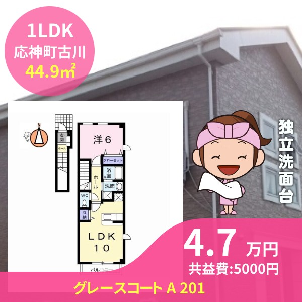 徳島市応神町古川のグレースコート A 201をご紹介します