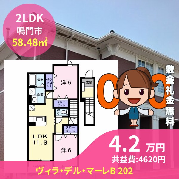 鳴門市鳴門町高島字南のヴィラ・デル・マーレB 202をご紹介します