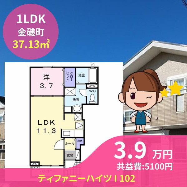 小松島市金磯町のティファニーハイツ I 102をご紹介します