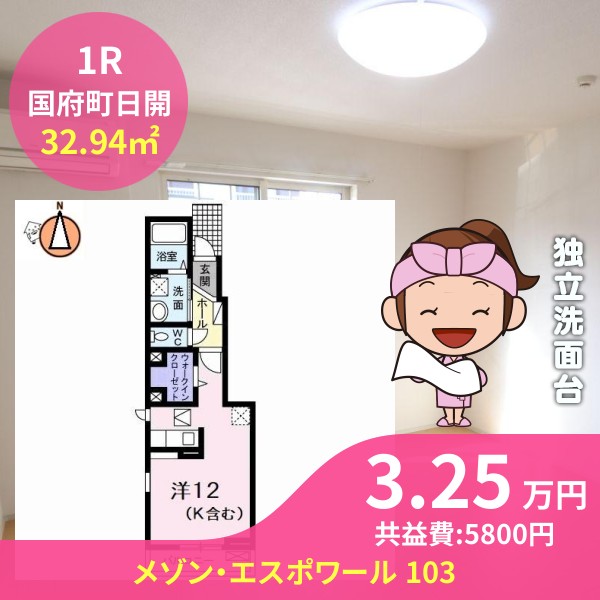 月額賃料は3.25万円で、共益費は5800円です
