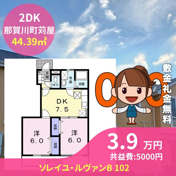 阿南市那賀川町苅屋のソレイユ・ルヴァンB 102をご紹介します
