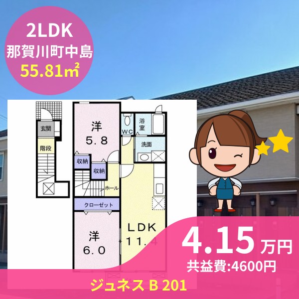 阿南市那賀川町中島のジュネス B 201をご紹介します