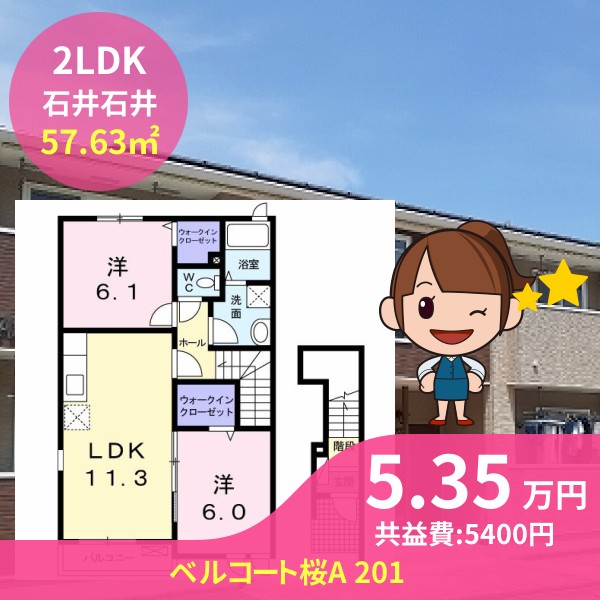 名西郡石井町石井石井のベルコート桜A 201をご紹介します