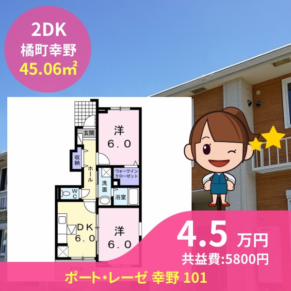間取りは2DKで45.06㎡の広さです