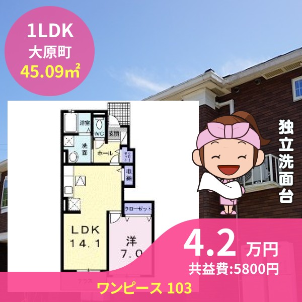大原団地東公園が820mにあり、ローソンも徒歩16分です。