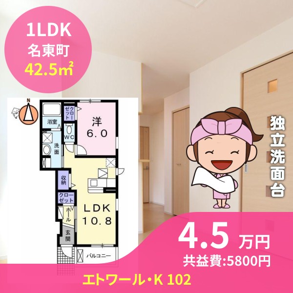 女性に特に喜ばれる独立洗面台のあるお部屋です