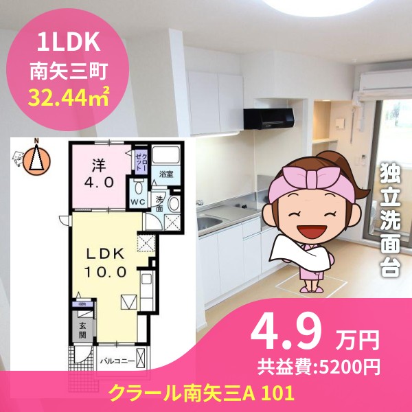徳島市南矢三町のクラール南矢三A 101をご紹介します