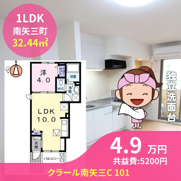 徳島市南矢三町のクラール南矢三C 101をご紹介します
