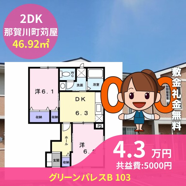 阿南市那賀川町苅屋のグリーンパレスB 103をご紹介します