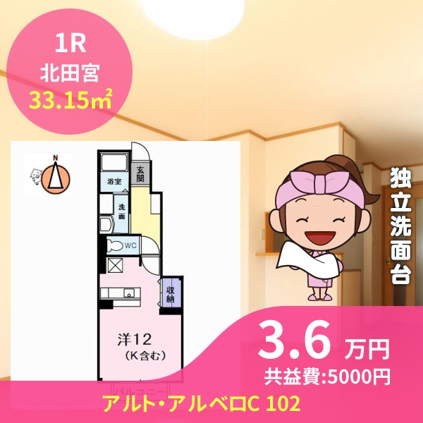 女性に特に喜ばれる独立洗面台のあるお部屋です