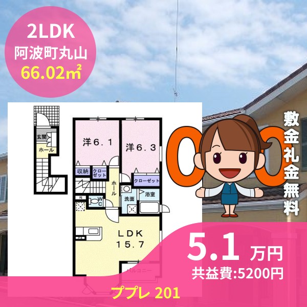 阿波市阿波町丸山のププレ 201をご紹介します
