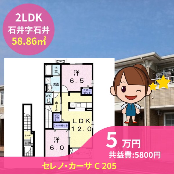 間取りは2LDKで58.86㎡の広さです
