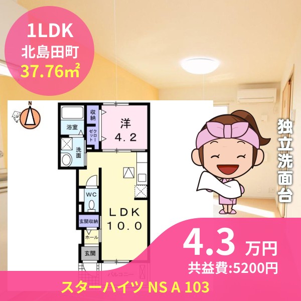 徳島市北島田町のスターハイツ NS A 103をご紹介します