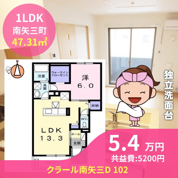 徳島市南矢三町のクラール南矢三D 102をご紹介します