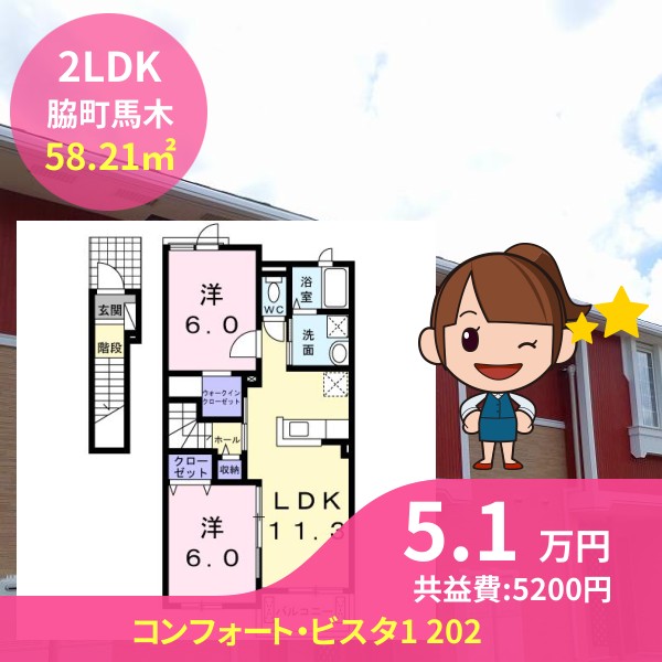 間取りは2LDKで58.21㎡の広さです