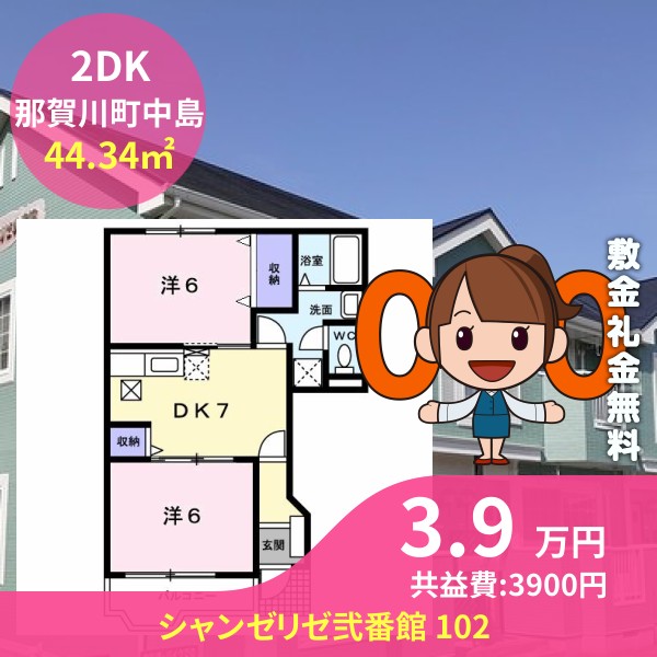 阿南市那賀川町中島のシャンゼリゼ弐番館 102をご紹介します