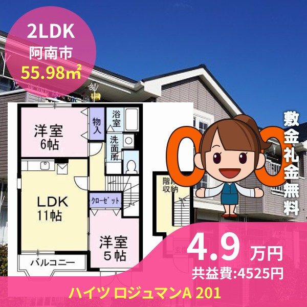 阿南市羽ノ浦町古庄のハイツ ロジュマンA 201をご紹介します