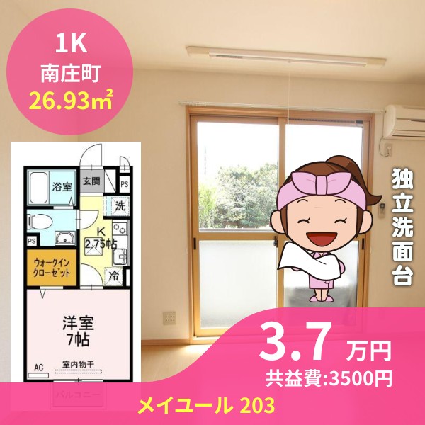 月額賃料は3.7万円で、共益費は3500円です