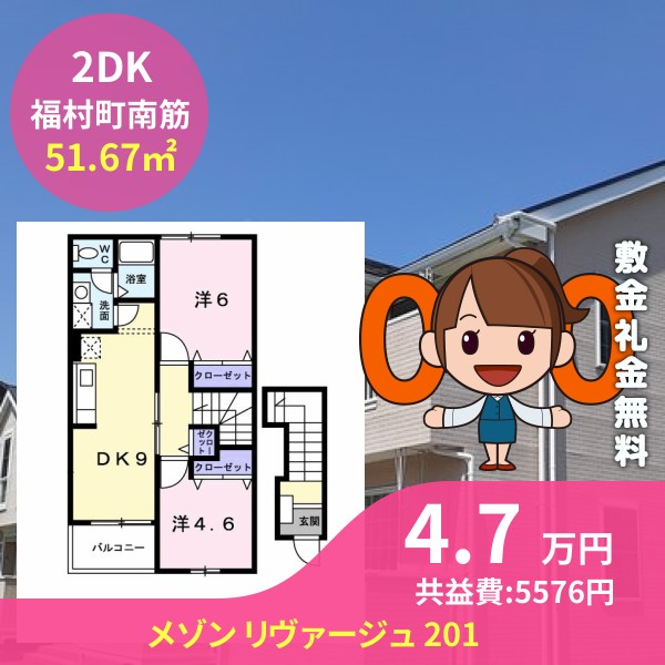 月額賃料は4.7万円で、共益費は5576円です