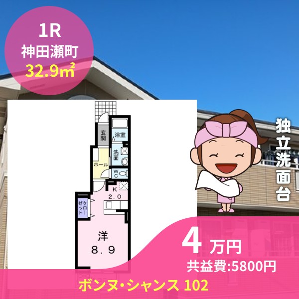 月額賃料は4万円で、共益費は5800円です