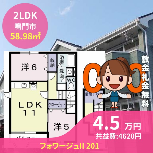 鳴門市撫養町木津のフォワージュII 201をご紹介します