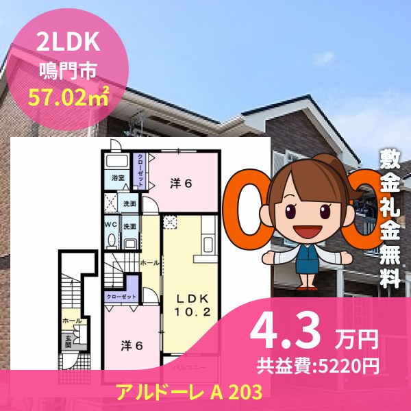 鳴門市大麻町大谷のアルドーレ A 203をご紹介します