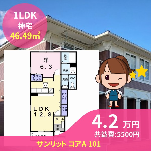 板野郡上板町神宅のサンリット コアA 101をご紹介します