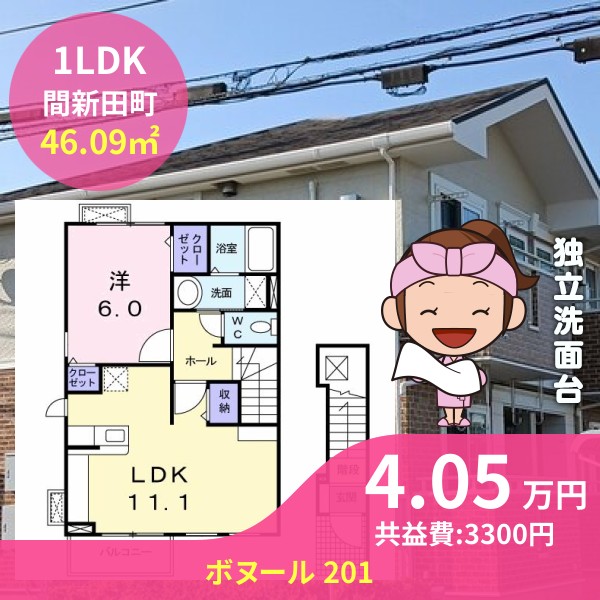月額賃料は4.05万円で、共益費は3300円です