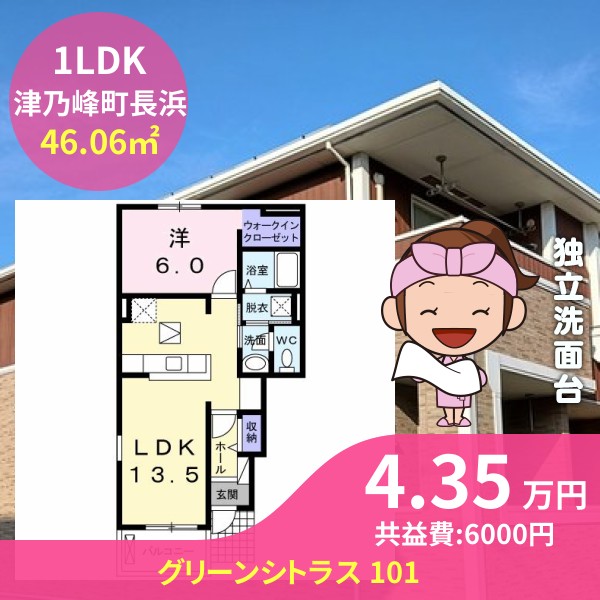 女性に特に喜ばれる独立洗面台のあるお部屋です