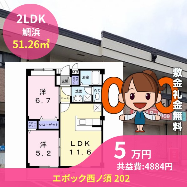 板野郡北島町鯛浜のエポック西ノ須 202をご紹介します