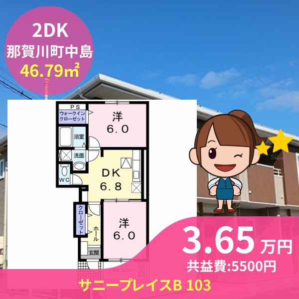 阿南市那賀川町中島のサニープレイスB 103をご紹介します
