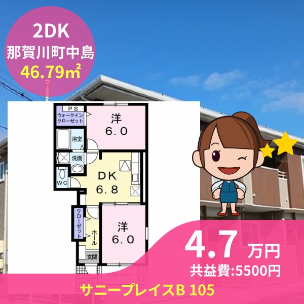 阿南市那賀川町中島のサニープレイスB 105をご紹介します