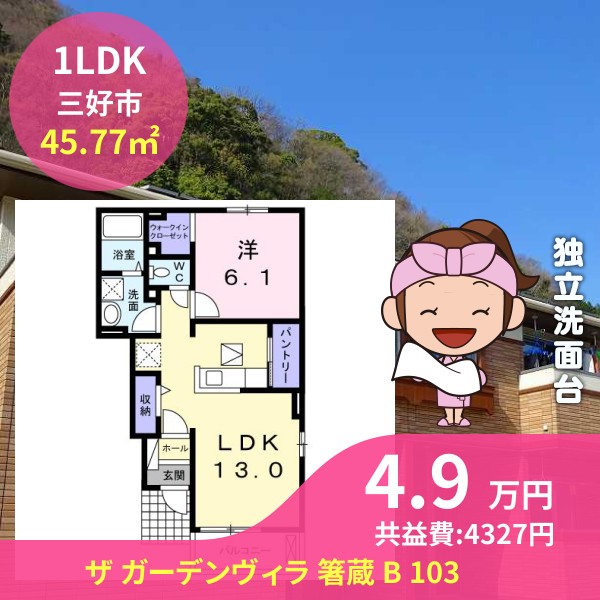 三好市池田町州津中津のザ ガーデンヴィラ 箸蔵 B 103をご紹介します