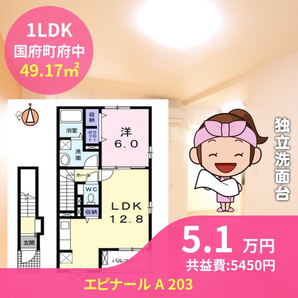 女性に特に喜ばれる独立洗面台のあるお部屋です
