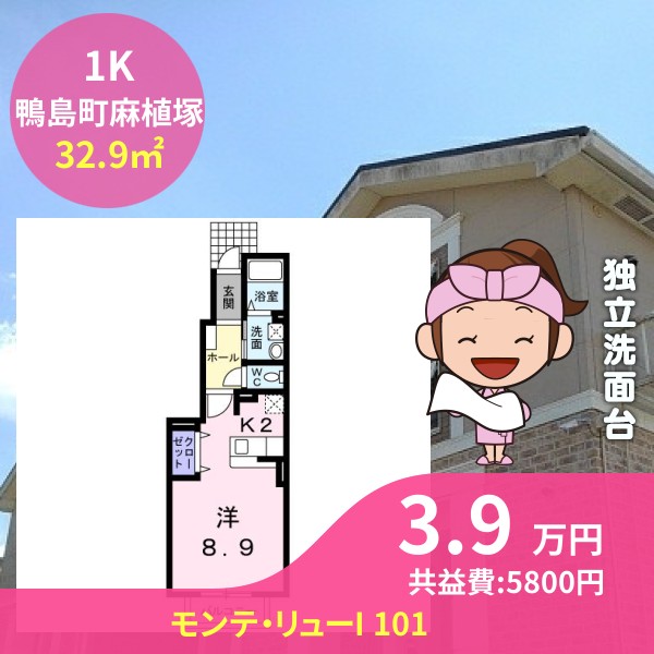 吉野川市鴨島町麻植塚のモンテ・リューI 101をご紹介します