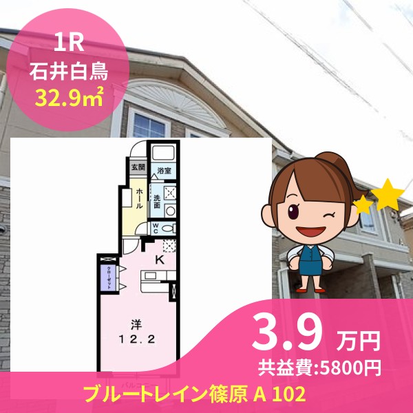 月額賃料は3.9万円で、共益費は5800円です