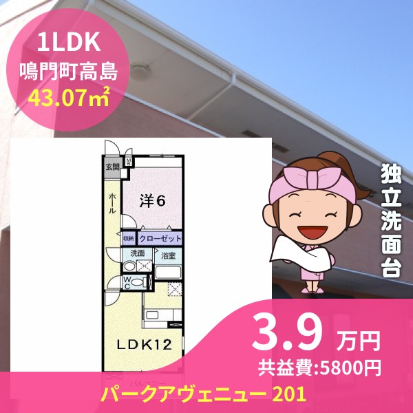 女性に特に喜ばれる独立洗面台のあるお部屋です