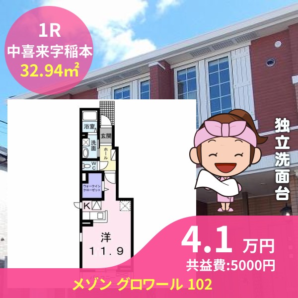 月額賃料は4.1万円で、共益費は5000円です