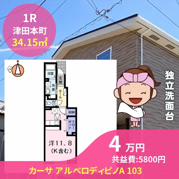 月額賃料は4万円で、共益費は5800円です