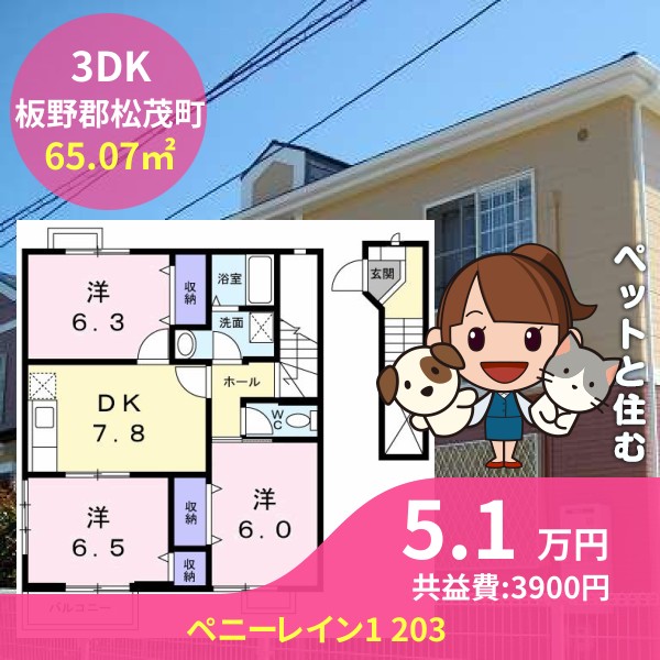 間取りは3DKで65.07㎡の広さです
