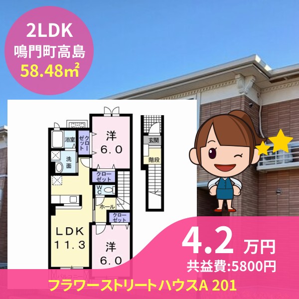 鳴門市鳴門町高島のフラワーストリートハウスA 201をご紹介します