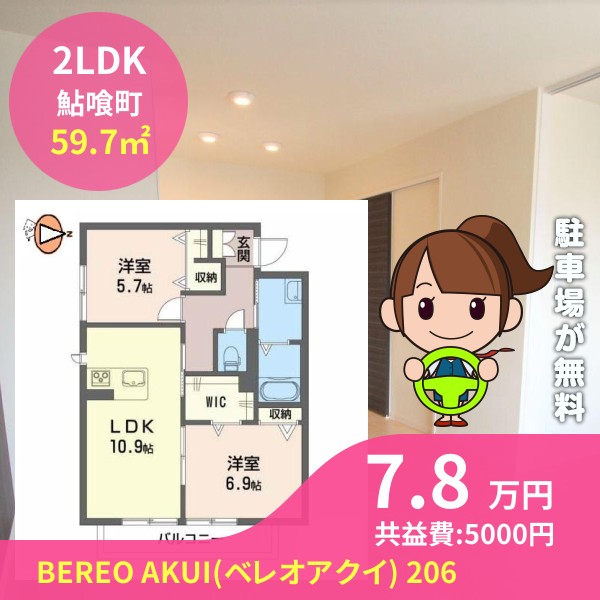月額賃料は7.8万円で、共益費は5000円です