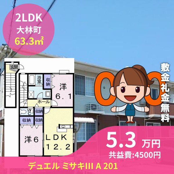 小松島市大林町字金岡のデュエル ミサキIII A 201をご紹介します